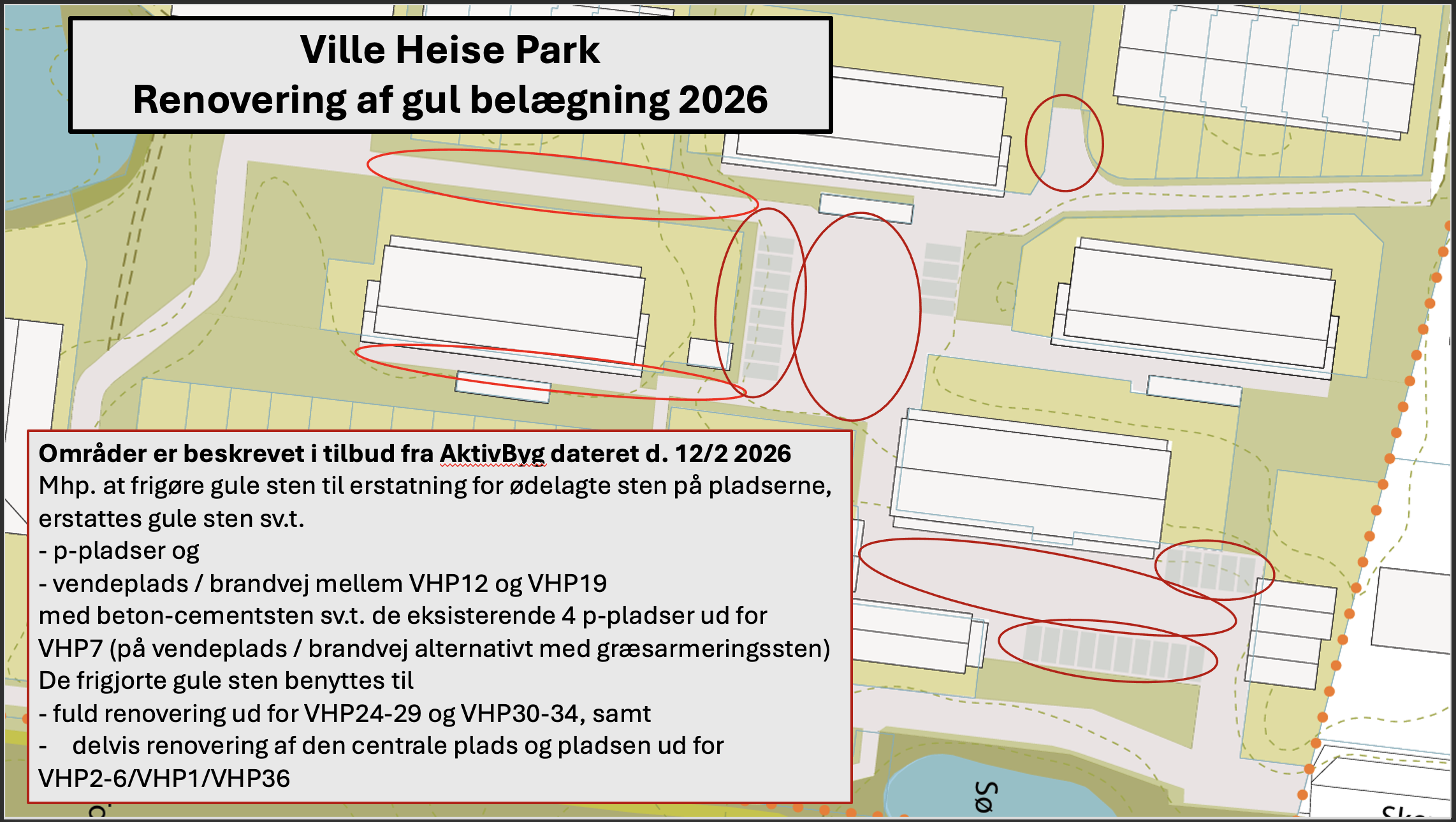 Forslag, beretninger, regnskab og referater Forslag, beretninger, regnskab og referater fra generalforsamlinger, afholdt i marts måned det pågældende år: 2026 Formandens beretning 2025 2026 Årsregnskab for 2025 2026 bilag Oversigt over renovering af belægning 2026 Indkaldelse 2025 Referat generalforsamling 2025 Forslag vedr. renovering af belægning 2025 Formandens beretning for 2024 2025 Årsregnskab for 2024 2025 indkaldelse 2024 Referat generalforsamling 2024 TDC fibernet udkast 2024 Årsregnskab for 2023 2024 indkaldelse 2023 Referat generalforsamling 2023 Årsregnskab for 2022 2023 indkaldelse 2023 januar – Supplerende ekstraordinaer generalforsamling 2023 januar – Ekstraordinaer generalforsamling 2023 januar – Indkaldelse til ekstraordinær generalforsamling 2022 Referat generalforsamling 2022 Ladestandere i VHP – forslag 2021 2020 2019 Ekstraordinær 2019 2018 2017 2016 2015 2014 2013